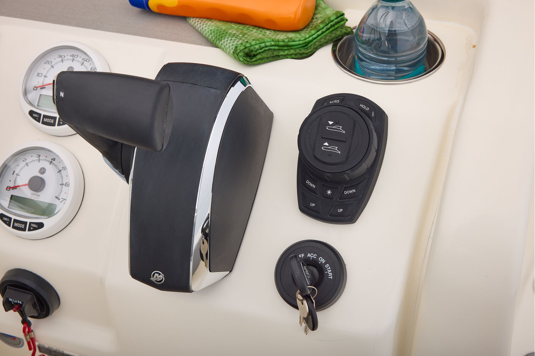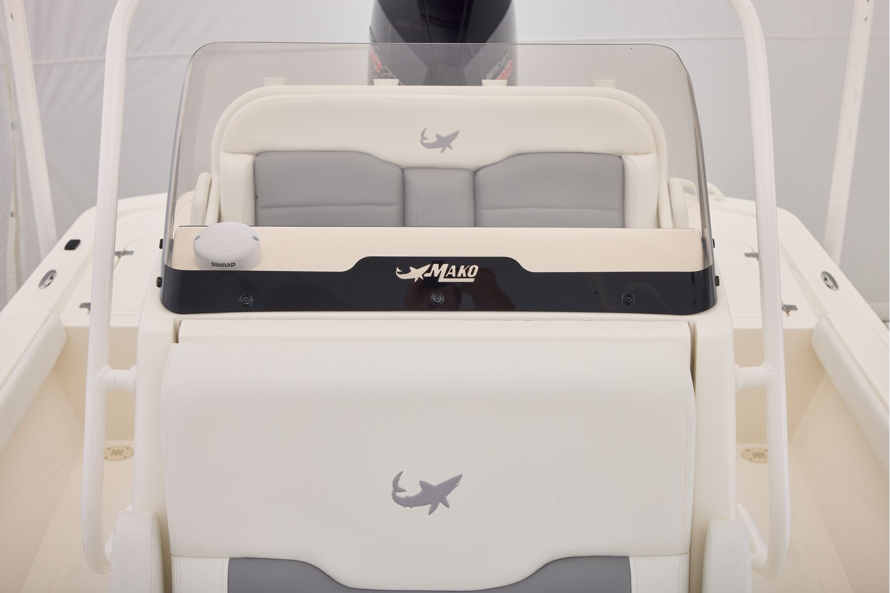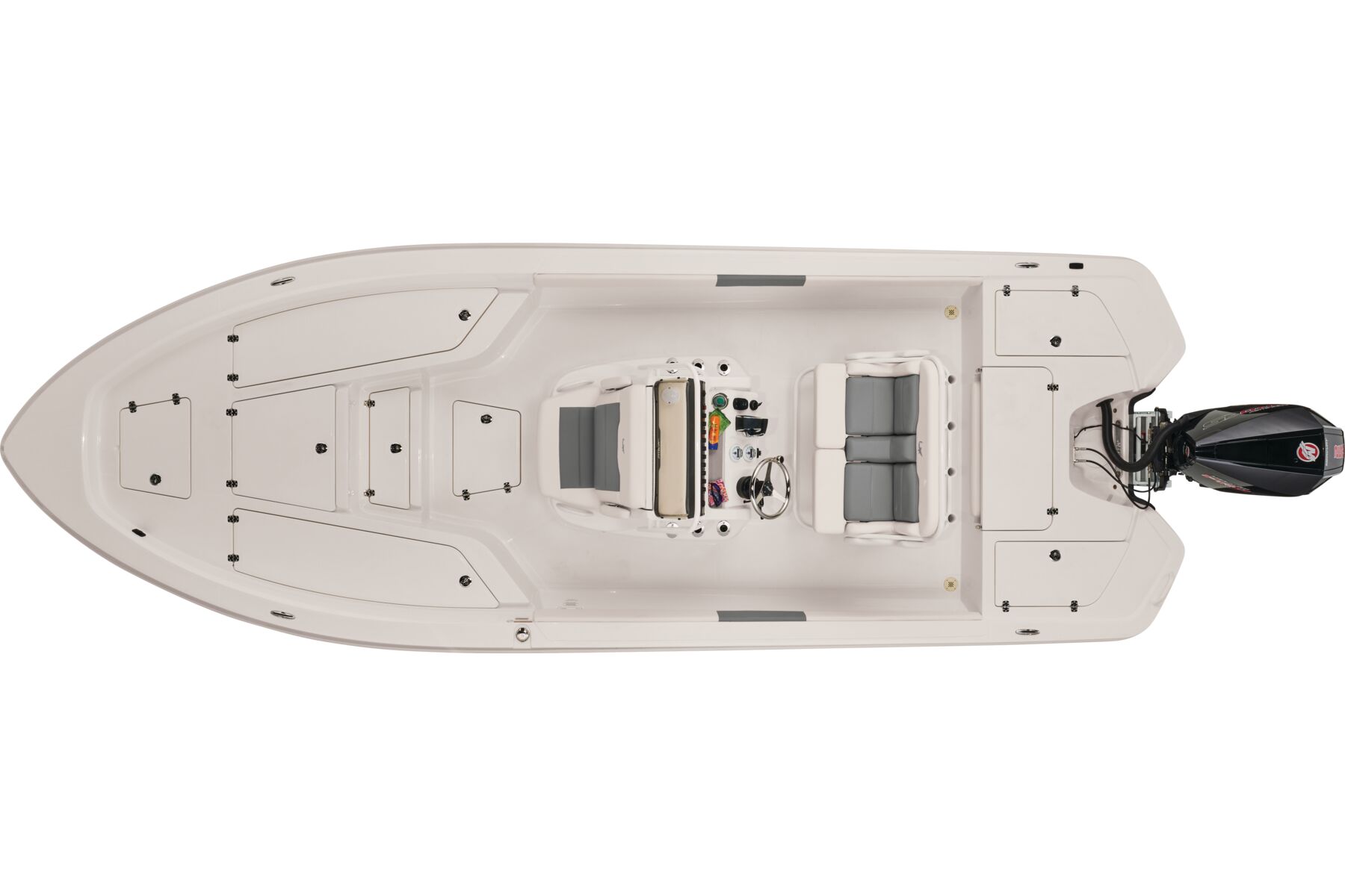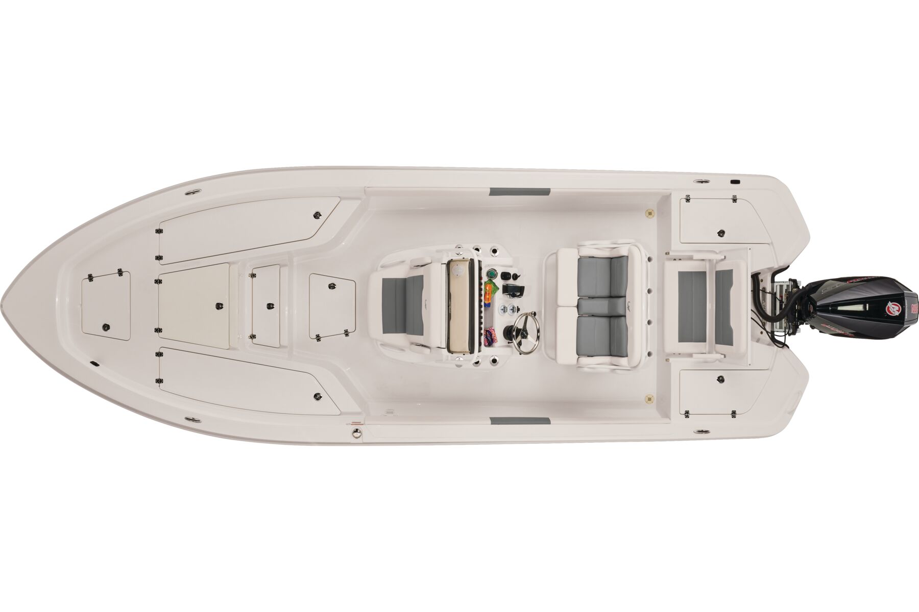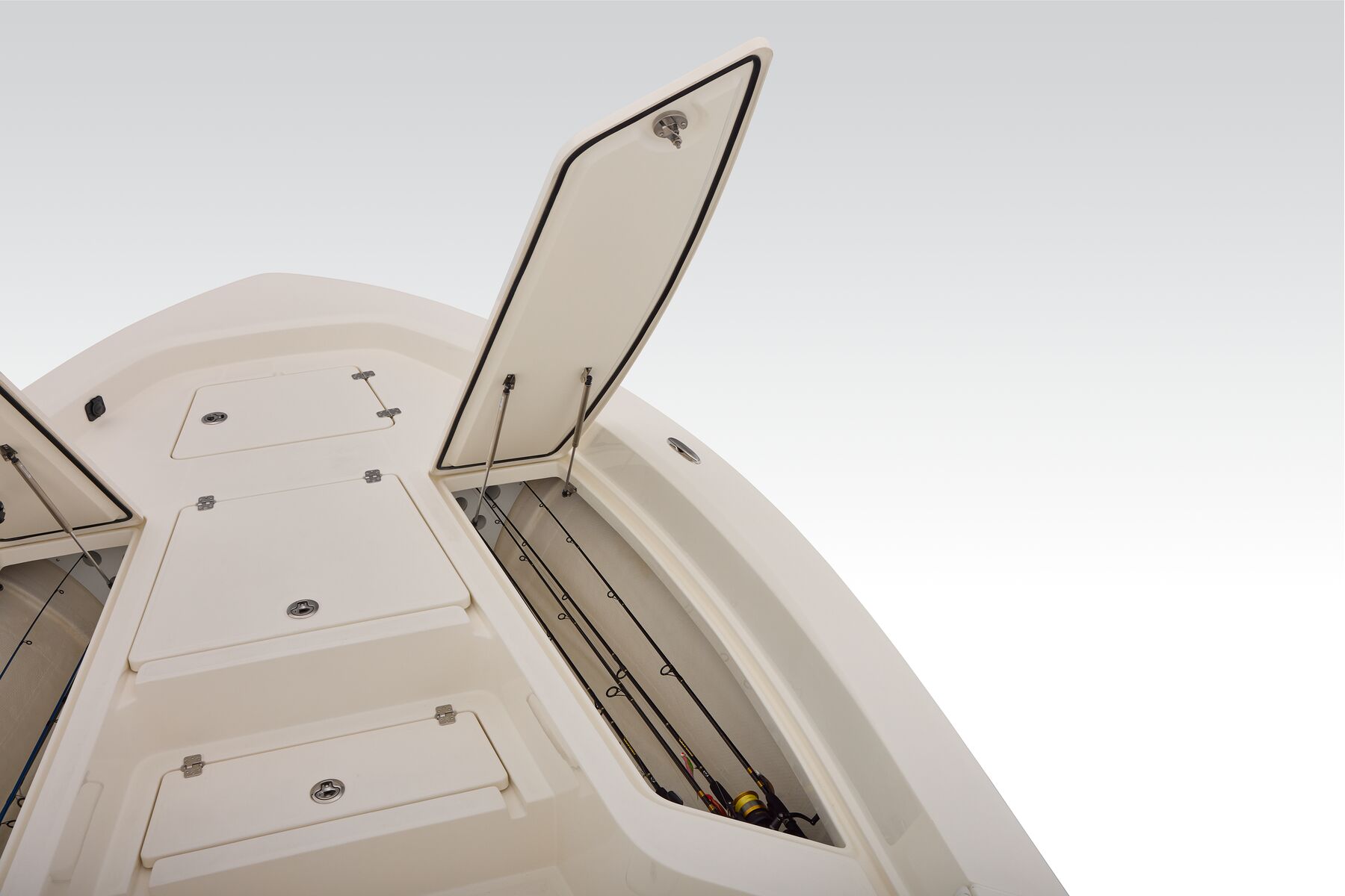 The MAKO® 24 Apex is here, slicing through waterways with a brand-new, performance-focused Next Generation Hull. Load up everything you need in its streamlined deck’s gear-organization solutions, including lockable gull-wing 8’ rod boxes, plenty of head storage, and more. Once you’ve found somewhere to cast a line, post up at the available fiberglass leaning-post bait station complete with a 30-gal. baitwell. The aft release well and bow in-step livewell round out this boat’s fishing-trip readiness. When it’s time to head back to shore to celebrate, hop in the central jump seat, engage the digital throttle, and get there faster with up to 400hp of get-up-and-go power. After experiencing the Apex, it's difficult to bring yourself back down.