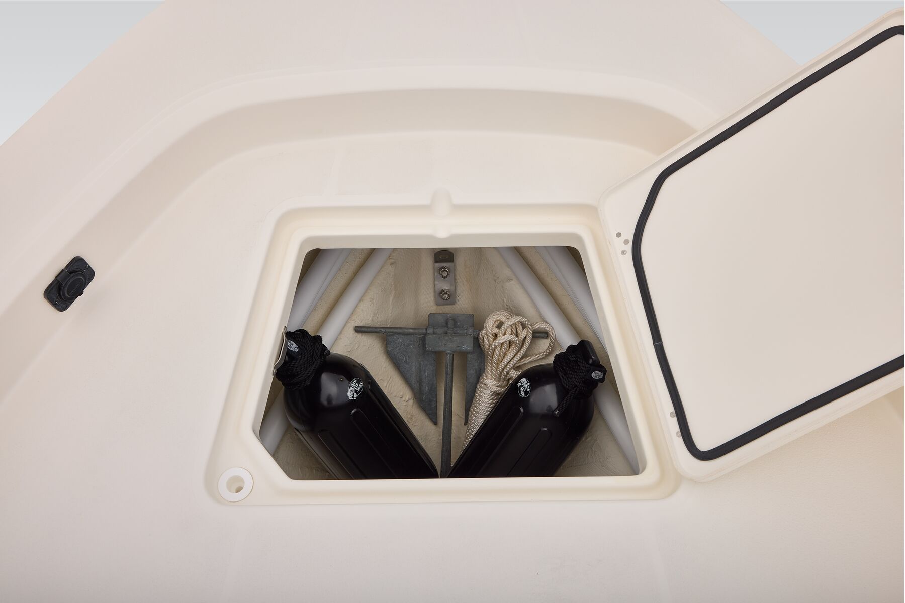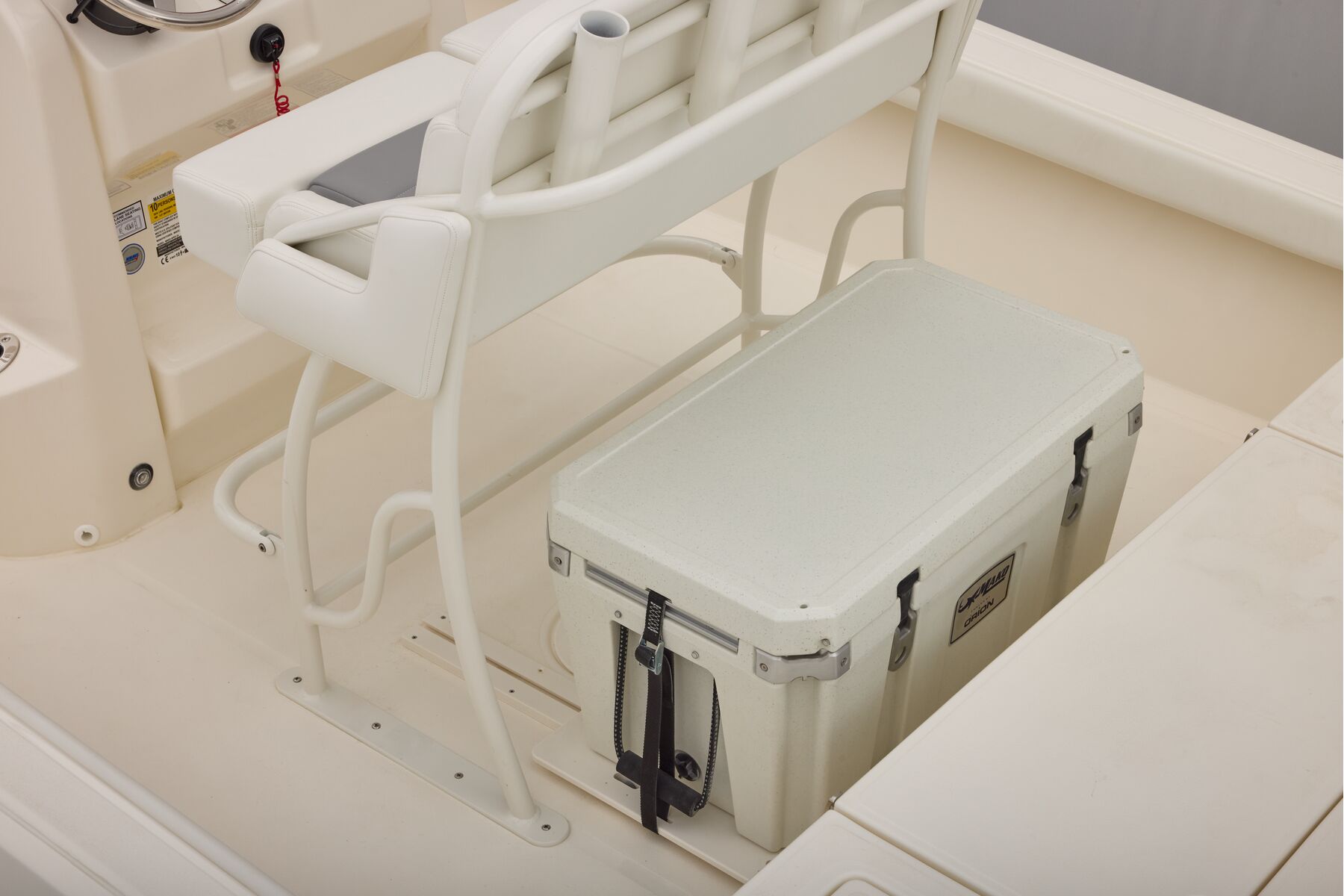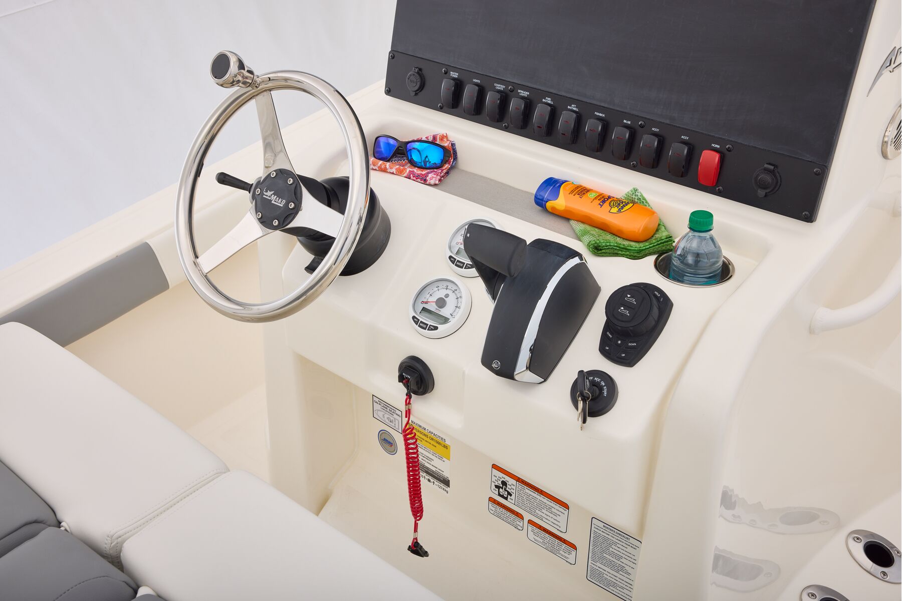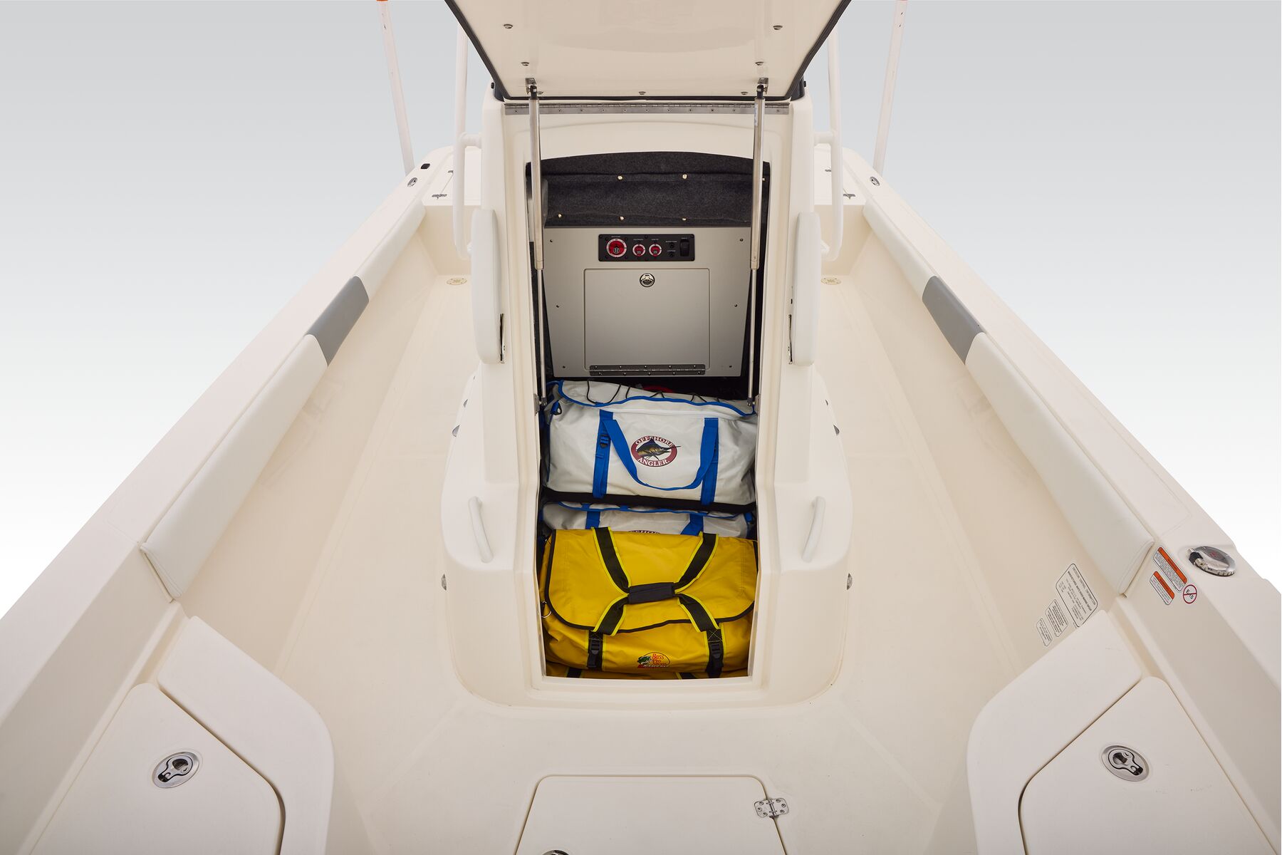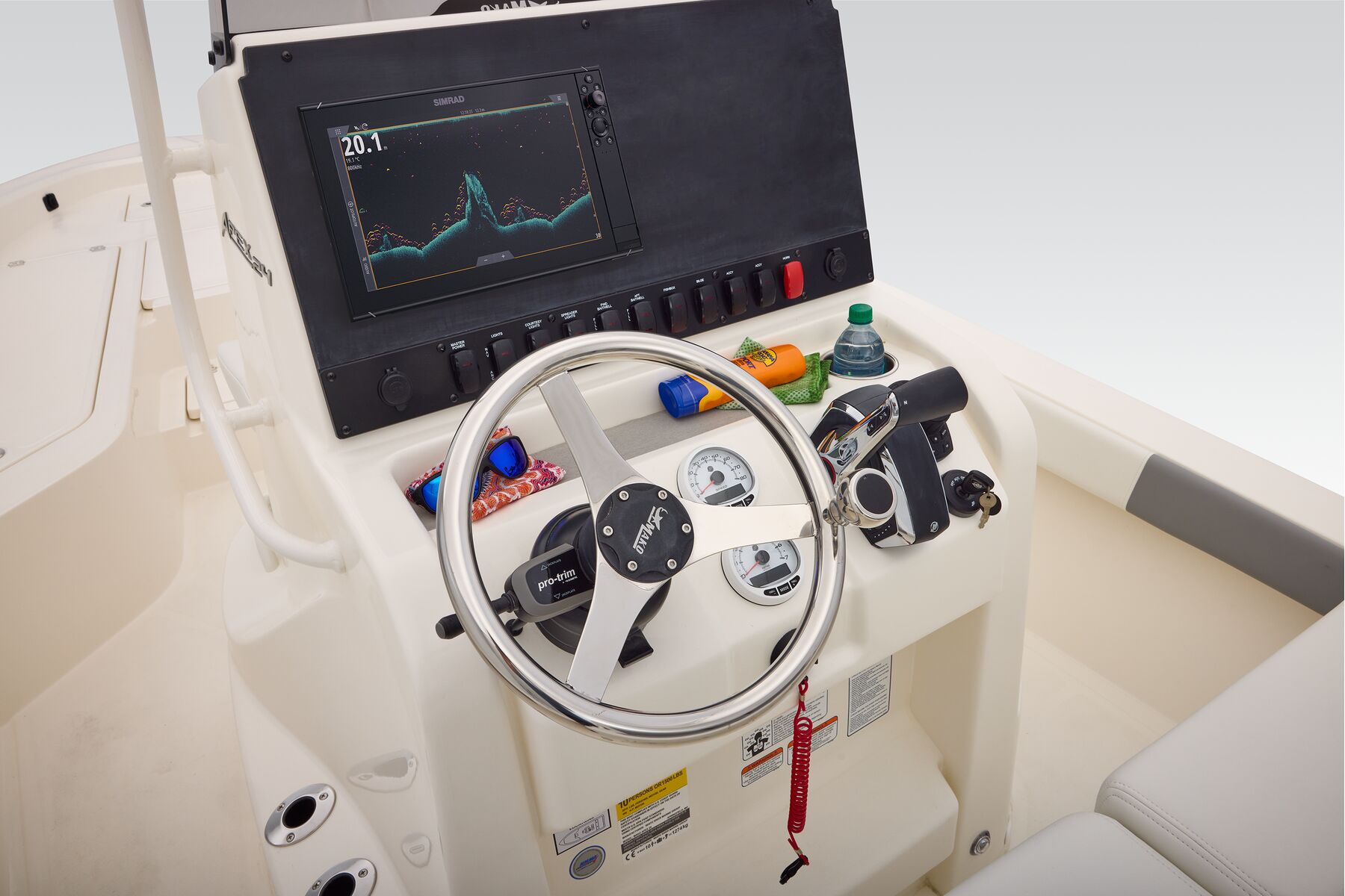 The MAKO® 24 Apex is here, slicing through waterways with a brand-new, performance-focused Next Generation Hull. Load up everything you need in its streamlined deck’s gear-organization solutions, including lockable gull-wing 8’ rod boxes, plenty of head storage, and more. Once you’ve found somewhere to cast a line, post up at the available fiberglass leaning-post bait station complete with a 30-gal. baitwell. The aft release well and bow in-step livewell round out this boat’s fishing-trip readiness. When it’s time to head back to shore to celebrate, hop in the central jump seat, engage the digital throttle, and get there faster with up to 400hp of get-up-and-go power. After experiencing the Apex, it's difficult to bring yourself back down.