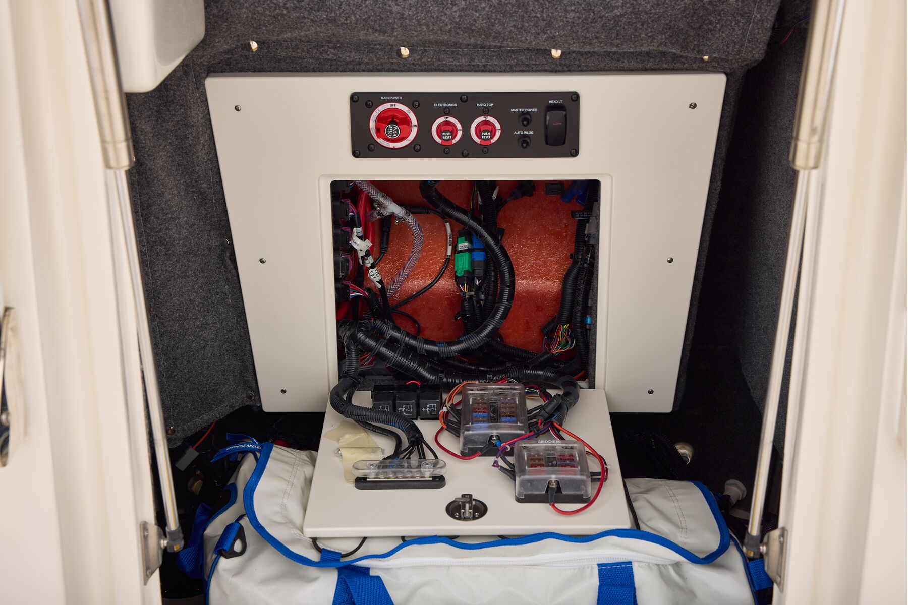 The swing-up door mechanism ensures smooth, effortless access, allowing you to quickly enter the head space electrical systems.