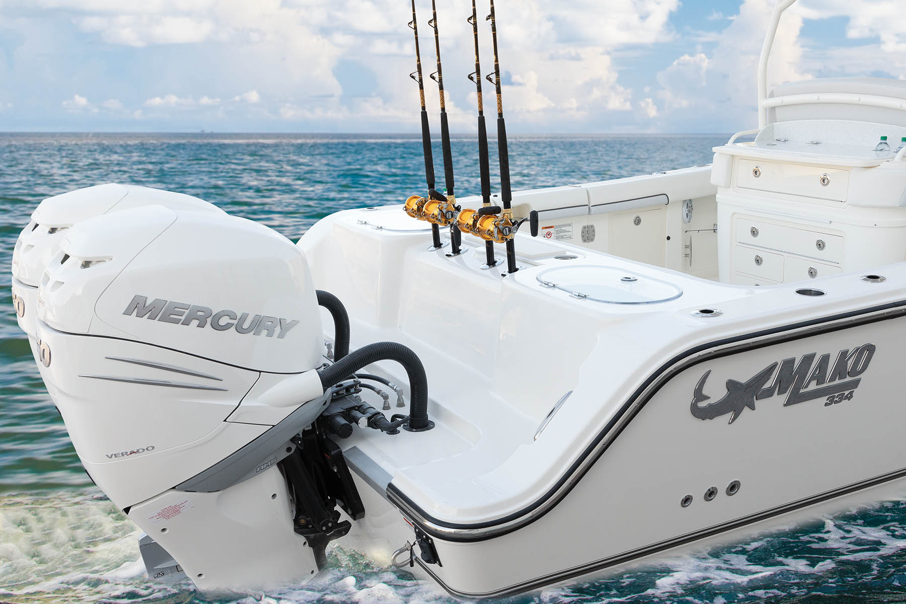 This advanced, spacious offshore craft offers unsurpassed flexibility in the interior plus the overbuilt durability that has made MAKO legendary for half a century. It’s built on a hand-laid, 24°-deadrise Deep V hull with a unique notched transom for top performance and improved efficiency. Powered with up to 1,200 horsepower, the 334 slices through the chop, rides dry and smooth, and has the range to handle any offshore quest.